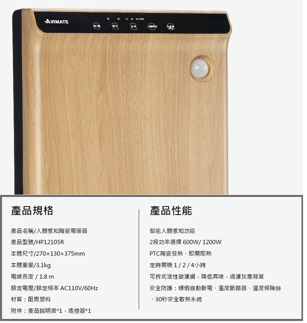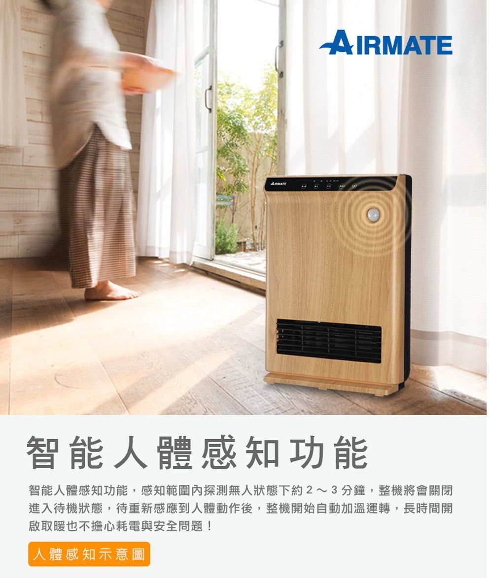 〈AIRMATE艾美特〉智慧人體感知陶瓷式電暖器 (HP12105R) 木紋款