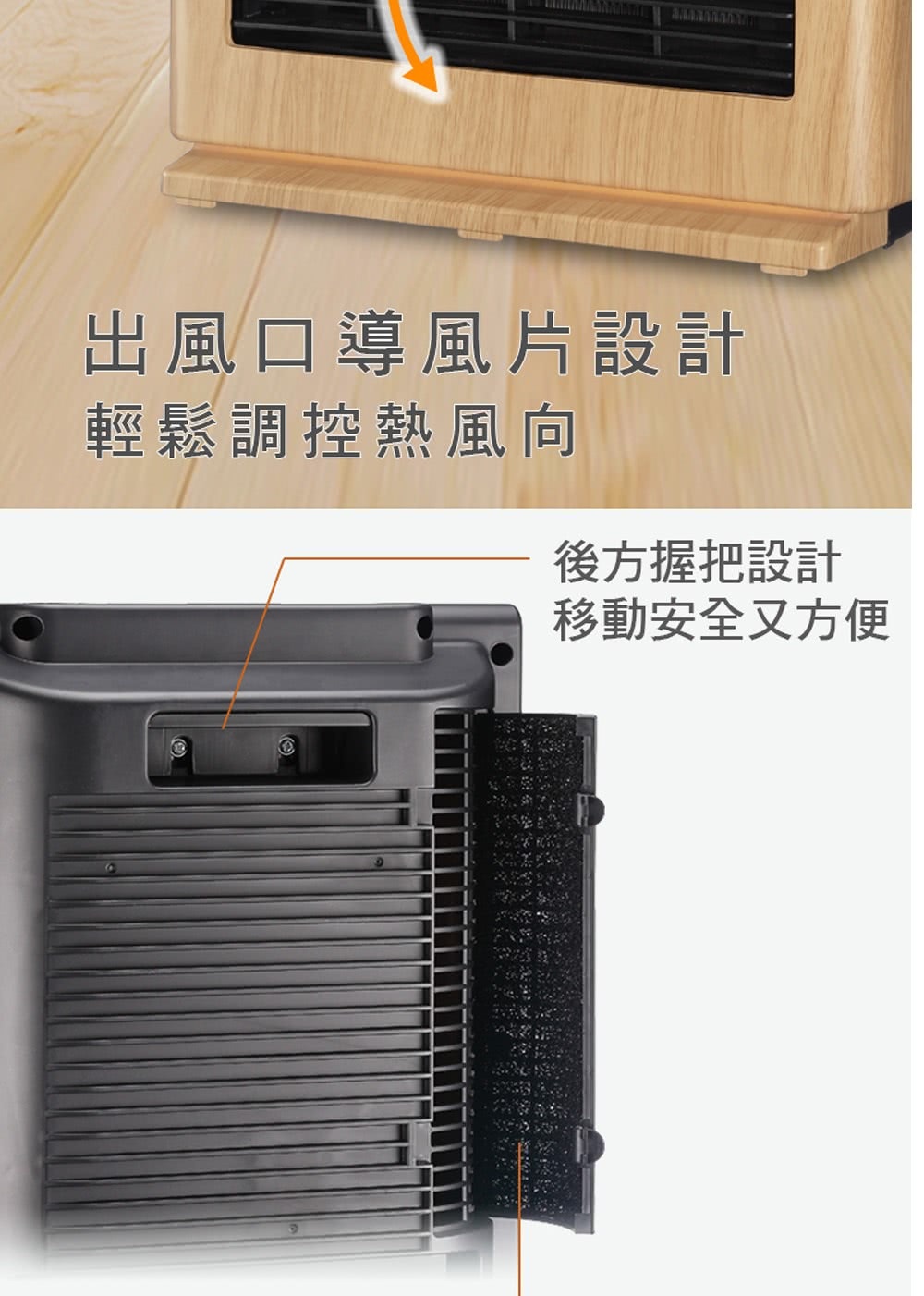 • 出風口導風片設計,輕鬆調控熱風向