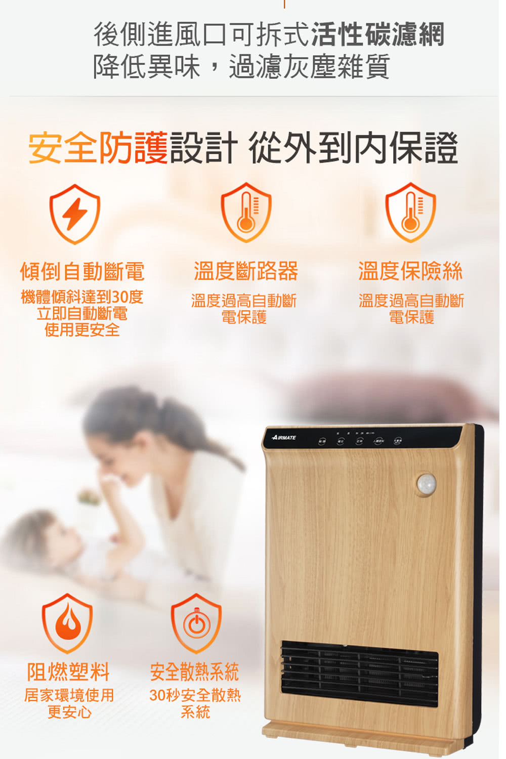 • 採用阻燃塑料,居家環境使用更安心