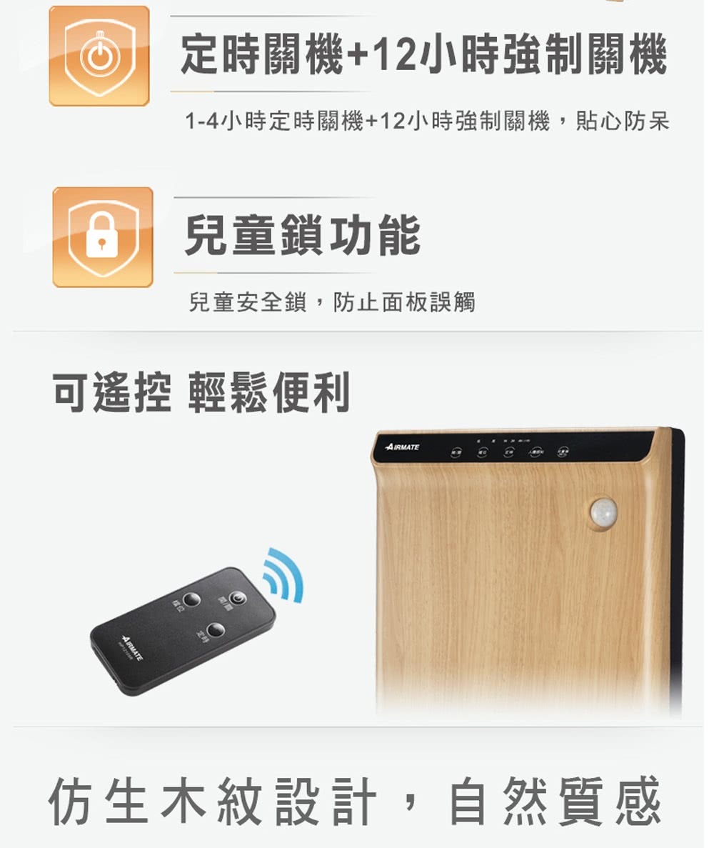 • 定時關機1/2/4小時;12小時強制關機,貼心防呆